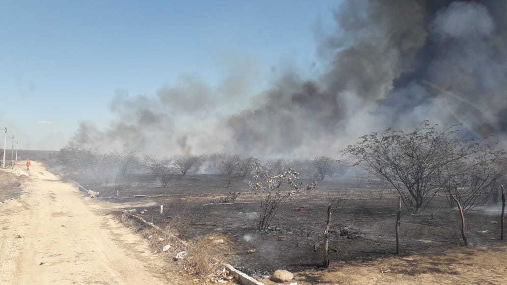 Mais um incêndio em vegetação foi controlado por equipes do Corpo de Bombeiros de Quixeramobim. Na tarde desta segunda-feira, 16, o incêndio consumiu um terreno próximo ao Hospital Regional do Sertão Central.
