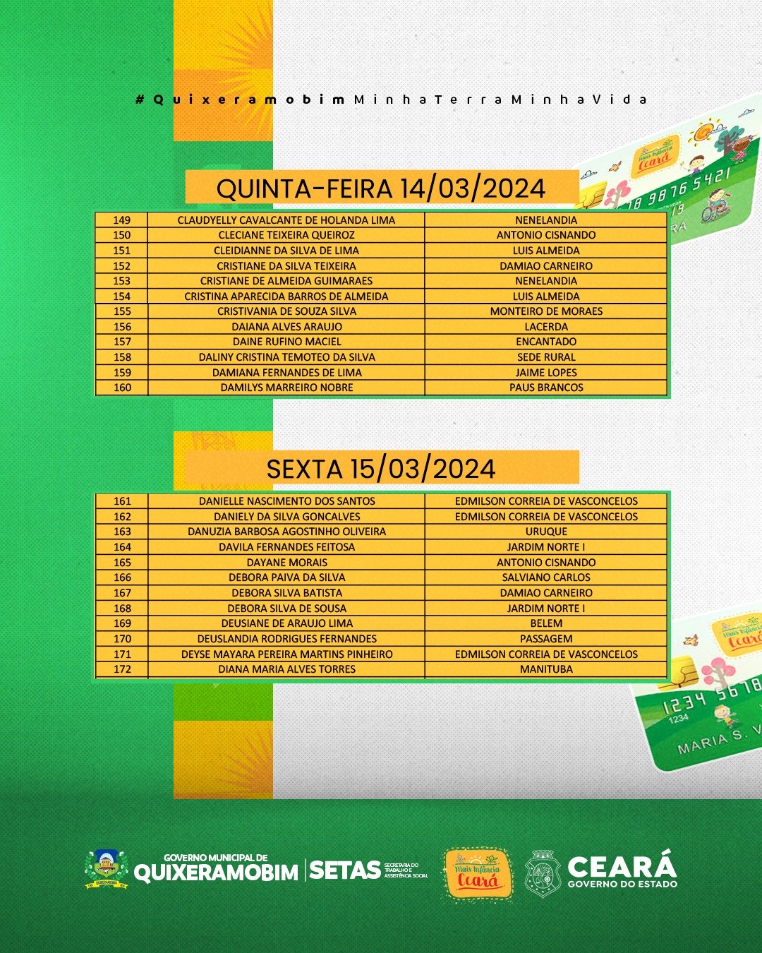 Assistência SocialCartão Mais Infância CearáDestaqueMais Infância CearáQuixeramobim