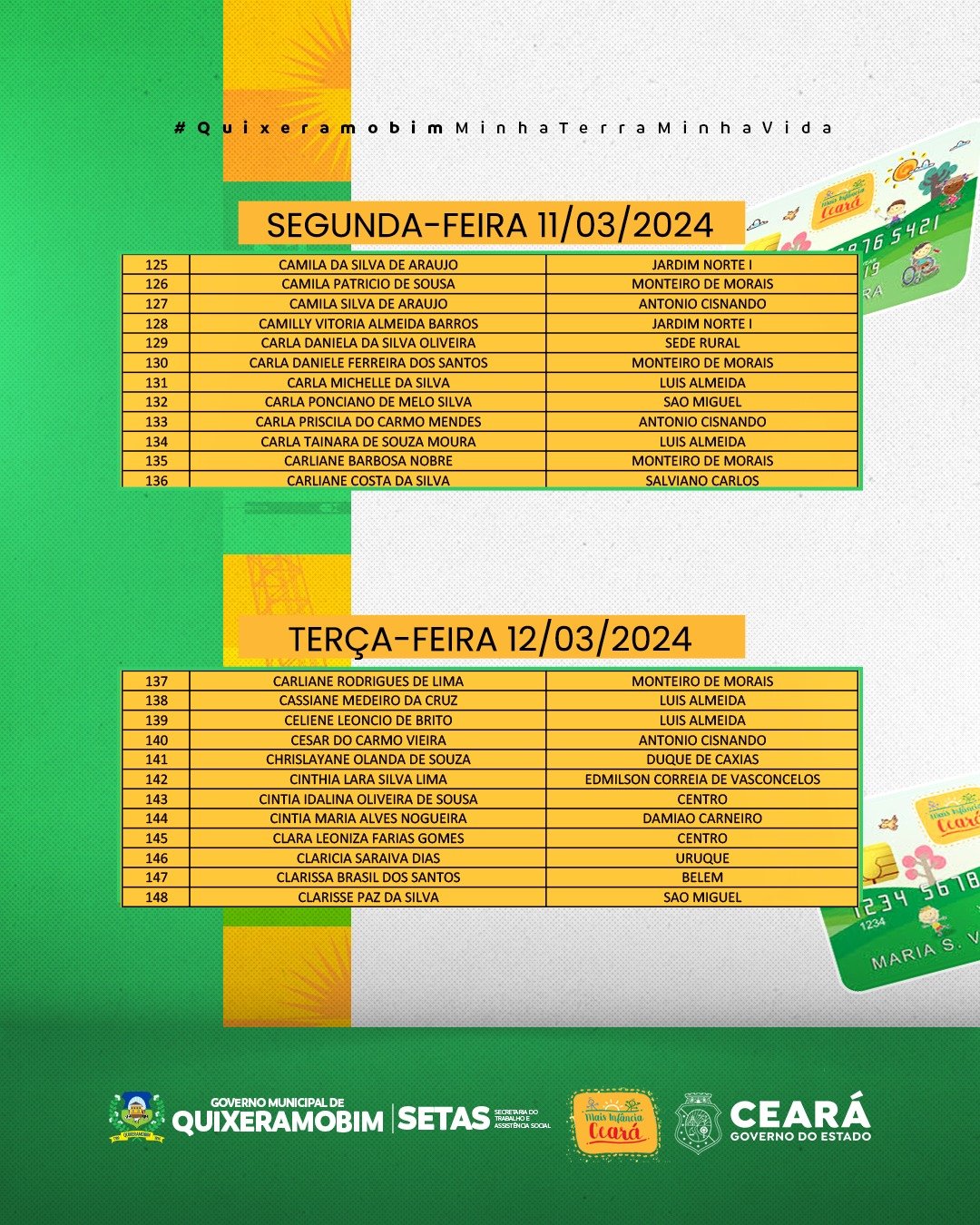 Quixeramobim  Veja lista de beneficiários do Mais Infância Ceará que devem comparecer ao Banco do Brasil nesta semana
