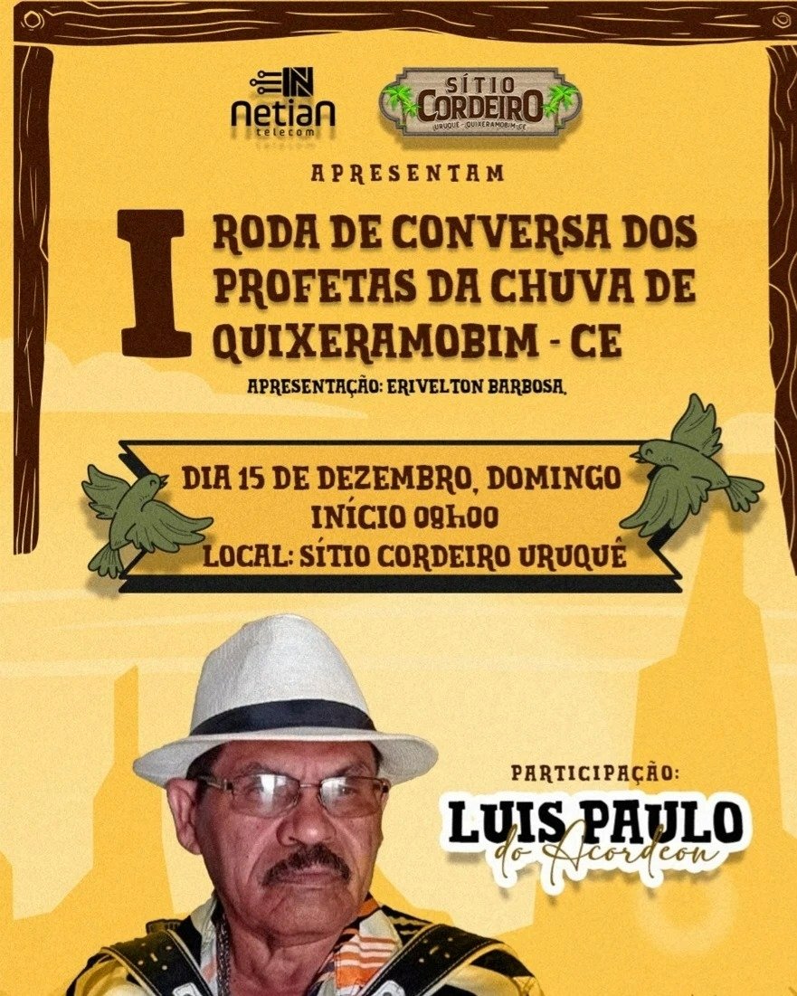 O município de Quixeramobim será sede, neste domingo, 15, da I Roda de Conversa dos Profetas da Chuva. O evento acontecerá a partir das 8h, no Sítio Cordeiro, no Distrito de Uruquê, zona rural.