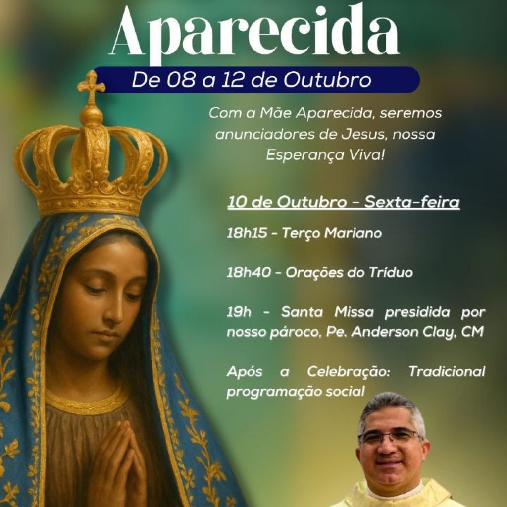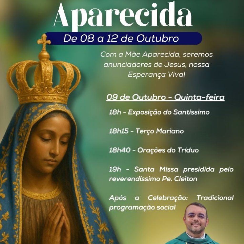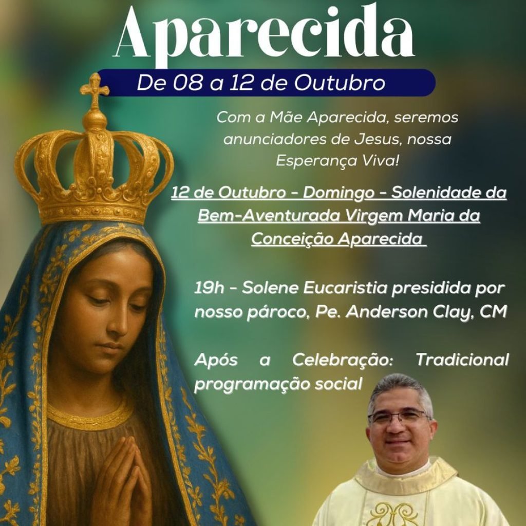 O ponto alto da festa será no domingo, 12 de outubro, data oficial dedicada à santa. A Missa Solene será celebrada às 19h, presidida pelo padre Anderson Clay, pároco da Paróquia de Santo Antônio.