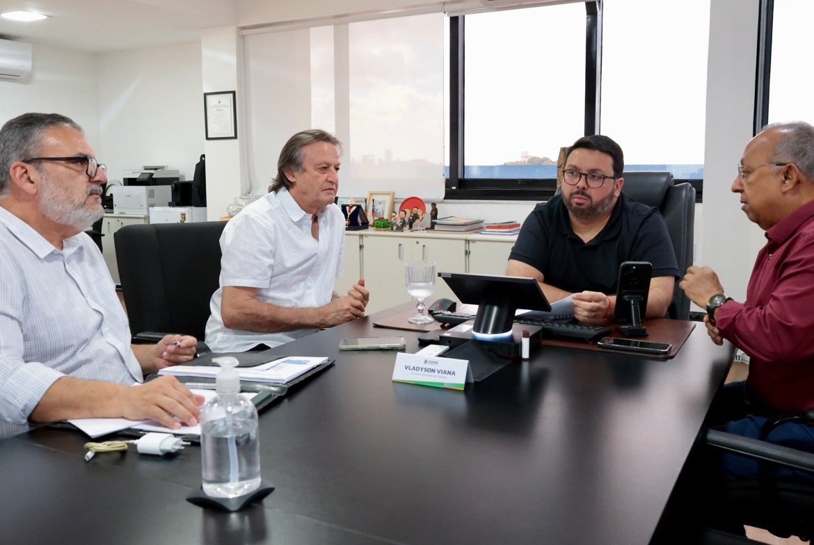 Nessa terça-feira, 18, o secretário do Trabalho do Estado do Ceará, Vladyson Viana, recebeu para uma importante reunião, o prefeito de Quixeramobim, Cirilo Pimenta, o secretário municipal de Desenvolvimento Econômico, Afrânio Feitosa, e o presidente do Instituto de Desenvolvimento do Trabalho (IDT), Raimundo Angelo. O encontro teve como pauta, o aperfeiçoamento do atendimento aos trabalhadores quixeramobinenses e a expansão de novas oportunidades de emprego no município.